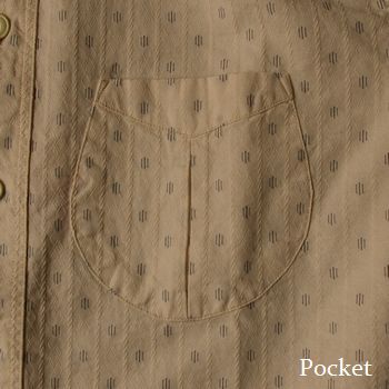 胸ポケットはプリーツ付きのデザインとなり、緩やかなラウンド形状が柔らかな雰囲気を醸し出し、オールド感溢れる仕様となる。