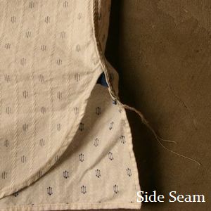 サイドの縫製は綿糸によるカラカン縫い。