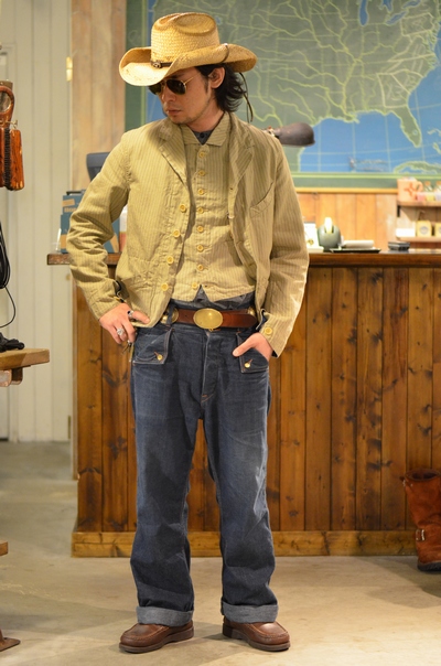 ヴィンテージらしい生地感が古いワークのテイストを演出してくれる一着となっておりますので様々なコーディネイトに合わせる事ができるジャケットを皆様のワードローブに加えてみてはいかがでしょうか。