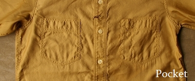 胸部分には当時のワークシャツに多く見られた懐中時計用のホールがボタンホール沿いに斜めにあいております。