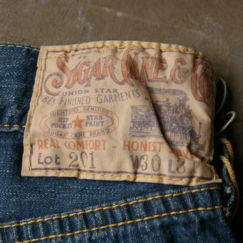 紙パッチやレザーパッチは最近のレプリカデニムで見る事が多くなったが、今回のモデルには、1930年代以前によく見られた布製ラベルを腰元に装備し、雰囲気抜群のポイントとなっている。