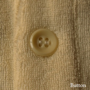 皿型のデザインの釦は留めやすいだけでなく、凹凸による形状の為、デザイン性も高いパーツとなっている。