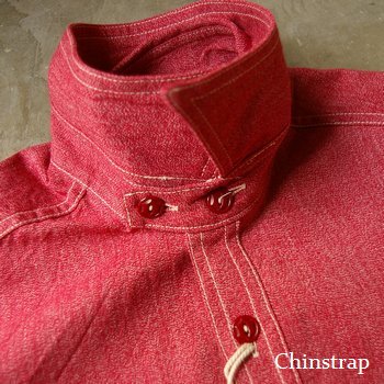 さらに、カラー裏側にはワークシャツデザインには欠かせないチンストラップ仕様のデザイン。