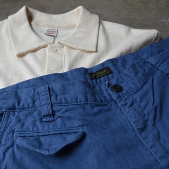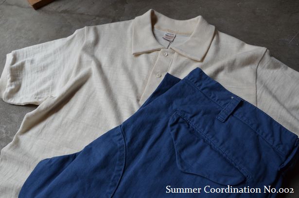 爽やかさを出す為に薄手のカラーのPANTS。そして無地のポロシャツを合わせてみました。