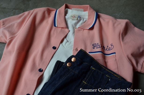 とてもシンプルなコーディネイトなのですが、T-Shirtsとは違った襟付きのシャツ。PANTSもフラップ付きのものとなりますのでシンプルすぎず、またワンポイントにもなってくれます。