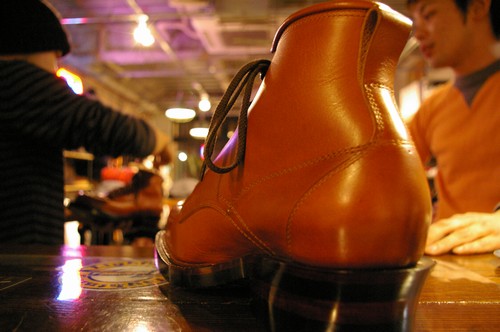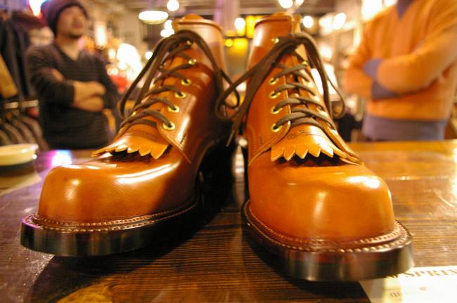 完成した別注Bootsを納品しに来店された【WHITE KLOUD】代表後藤さん、今回ステッチダウン製法でBADALASSIを使用するのは初の試みであった為、数々の難関に直面されたようで・・・