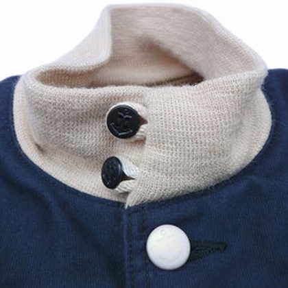 襟リブ部分のボタンに関しては、ブラックのアンカーボタンになります