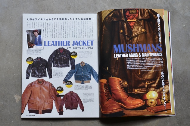 と、MUSHMANSで使用されたレザー達の経年変化が掲載されております