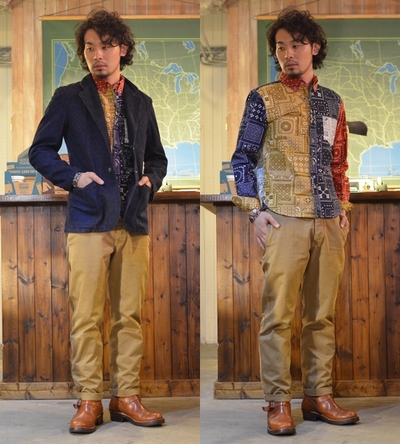 クレイジーパターンのバンダナ柄SHIRTSは、一見するに「派手」の極みに見えますが 実は非常にコーディネートしやすく、重宝するアイテムです。