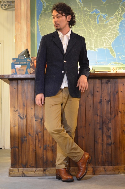 日頃思うのですが、ファッションというか洋服選びというのは、今の自分をちょっとだけ「背伸び」してコーディネートするというのが良いと思っておりまして、最近テーラードジャケットスタイルのアイテムが人気なのは、単なる流行というものでは無く、MUSHMANSに来店されるお客様の年齢層が店舗の継続年数と共に上がってきたという事も考えられるのかな?とか、ちょっと分析じみててアレなんですが、とにかく今の時季に私自身も食指が動くアイテムです。