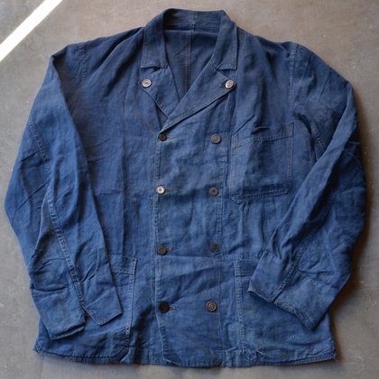 1900年代前半に、フランスのコックジャケット(シェフジャケット?)として使用されていた、ブルーカラーが美しいダブルブレストのジャケット。