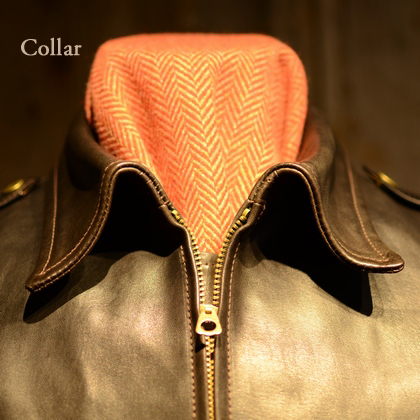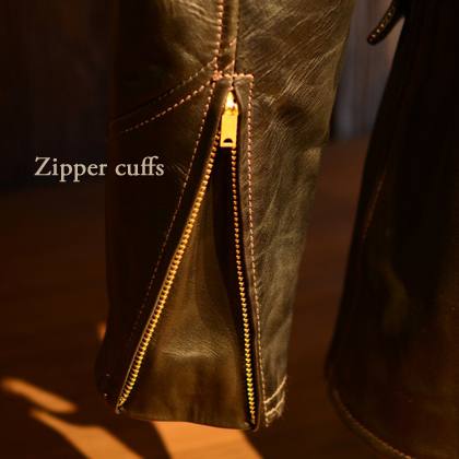 Zipper裏にウインドフラップを標準装備しておりますが、バイクライディングを想定していないお客様へはウインドフラップを装着しない構造でオーダーを承ります。