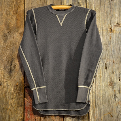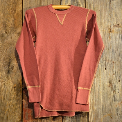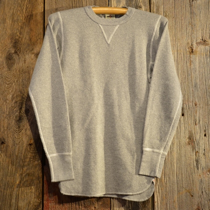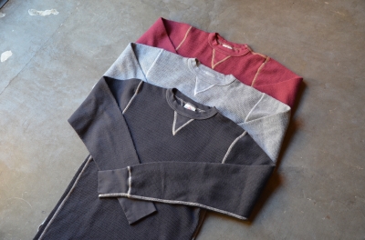 ワッフル生地とは違うオールドサーマルならではのふっくらとした肉厚と柔らかさ。アンダーに着た時の保温力は折り紙付きです。