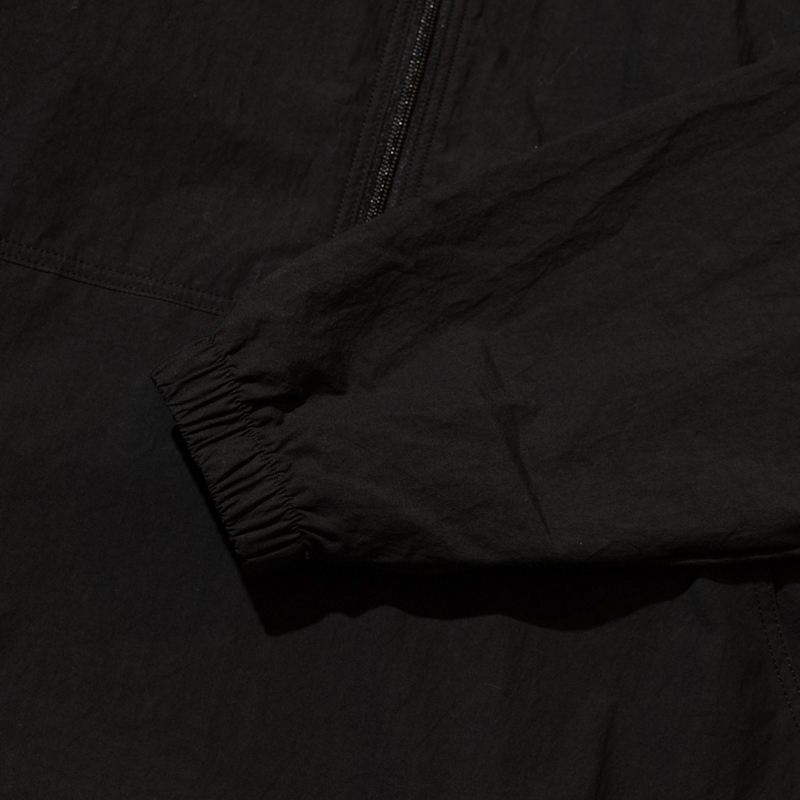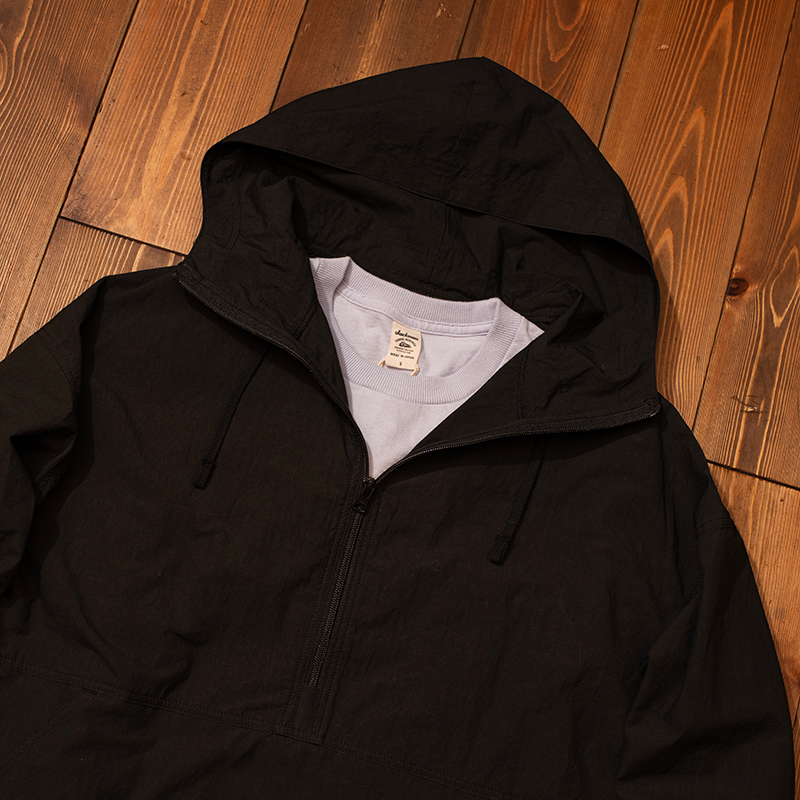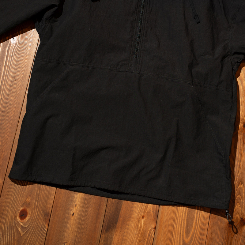ポケットはカンガルーポケットが配置され、ゴムの入ったギャザータイプの袖口は肘まで上げての着用もずれにくい仕様、また裾にはドローコードが付属しており、気分に合わせて絞ったりとシルエットを調整できます。
