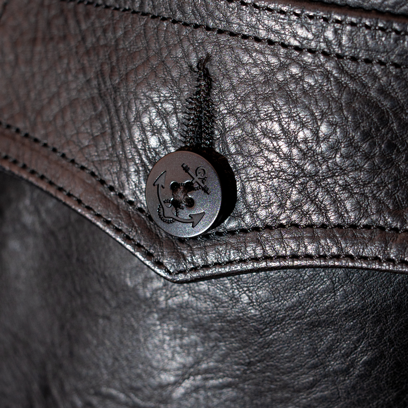 本来このようなポケットは、ウールやコットンのシャツに多く見られるものですが、あえてレザーで再現する事で、この美しい曲線美を楽しんでいただけるものとなりました。
