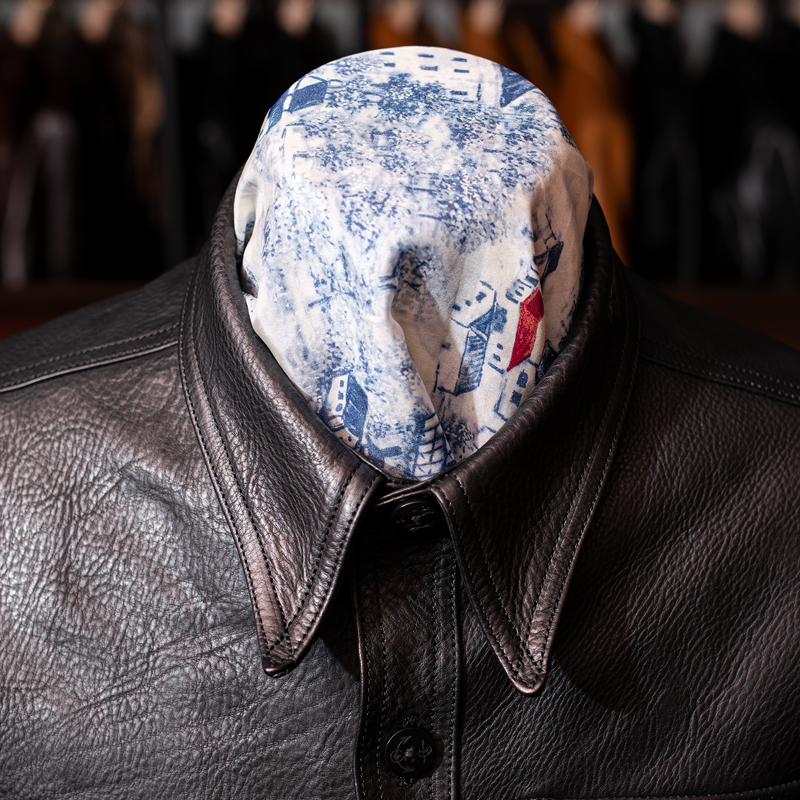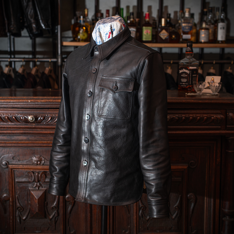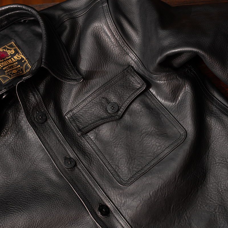 いかがでしょうか?これまでに無かった存在感のレザーシャツに仕上がったと、手前味噌ながら感動しております。