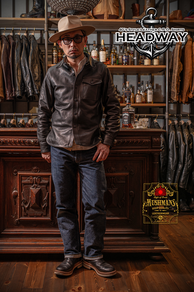 ★MUSHMANS Leatherの新作モデル、40's Style Leather C.P.O. Shirts "HEADWAY/ヘッドウェイ"の予約受付を本日よりスタートいたします。カスタムオーダーベースではない、新たなラインとして構築した一着を是非ご覧くださいませ!★