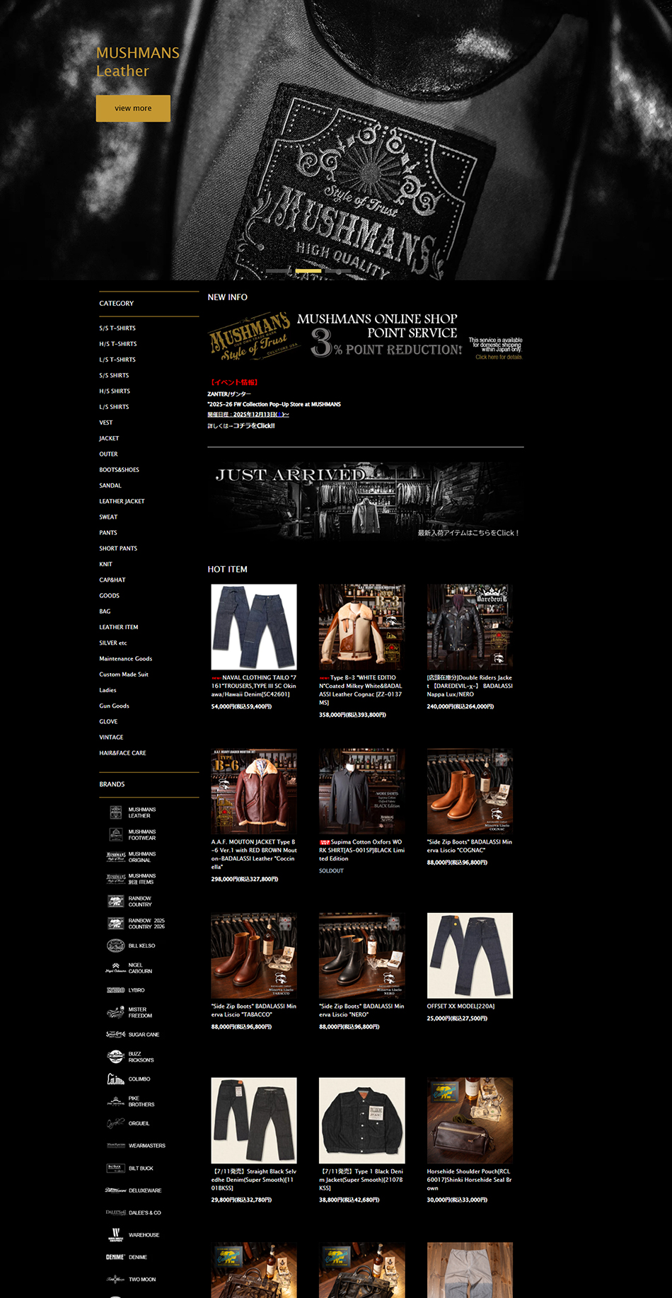 MUSHMANS ONLINE SHOP リニューアル完了のお知らせ!!