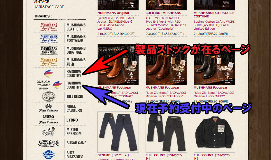 今シーズンは、当店ONLINE SHOPにおいて【現在ストックの在るRainbow Country製品】と【予約受付中のRainbow Country製品】を分けて表示しております。