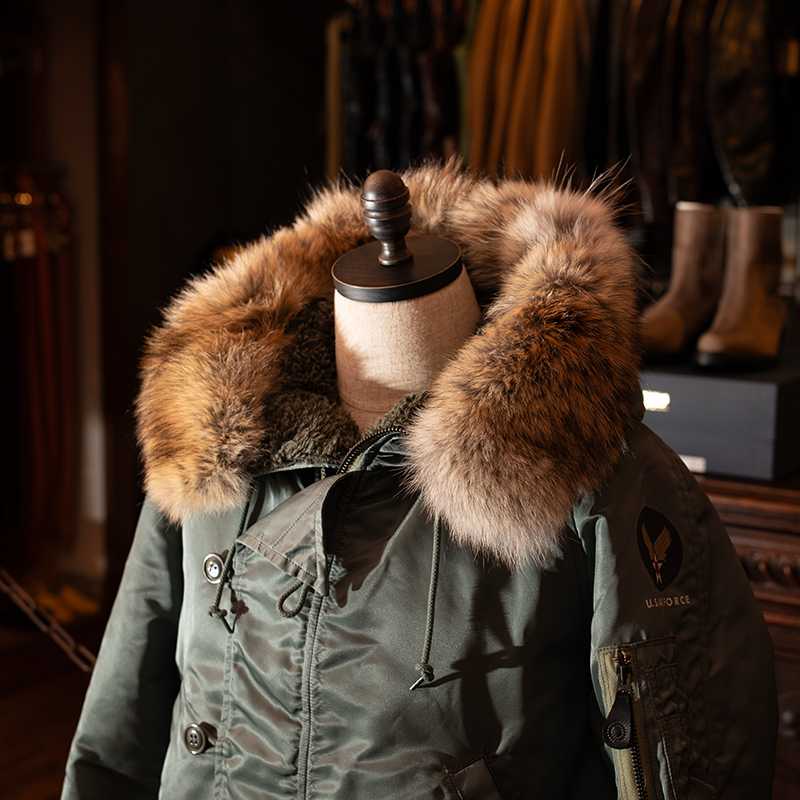 同時期に語られるのがN-3B。いわゆる“スノーケルパーカ”として知られ、膝上にかかるコート丈で、極寒地での待機や歩哨、フライトラインでの長時間作業など「動きが少ない/体温を奪われ続ける状況」に強い設計です。