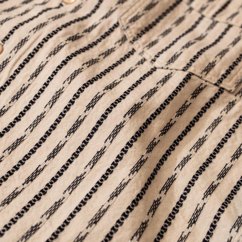 ざっくりとした二重梁(にじゅうばり)のジャガード織りファブリックを使用し、同ブランドらしさを存分に感じられる一着。