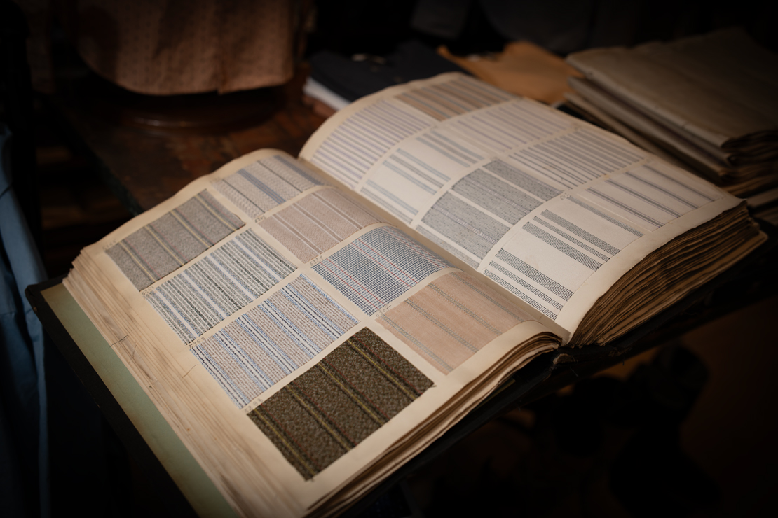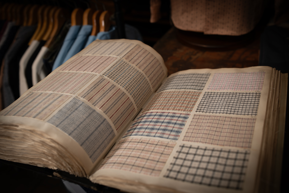 現在開催中の受注会では、これらアイテムのデザインソースとなった100年前の生地見本帳も展示しております。↓↓
