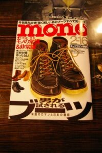皆様こんにちは【Mushmans】代表の藤田です。プレスリリース今回の雑誌は皆様御存じの【monoマガジン】 カスタムブーツメーカー【WHITE KLOUD】さんとのコラボレーションによって生まれた WHIT […]